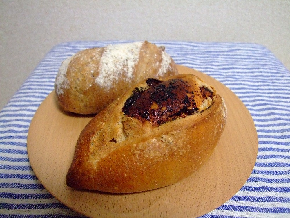 写真は、手前が“ほたるみそパン”で、奥が“ナッツラム”です。