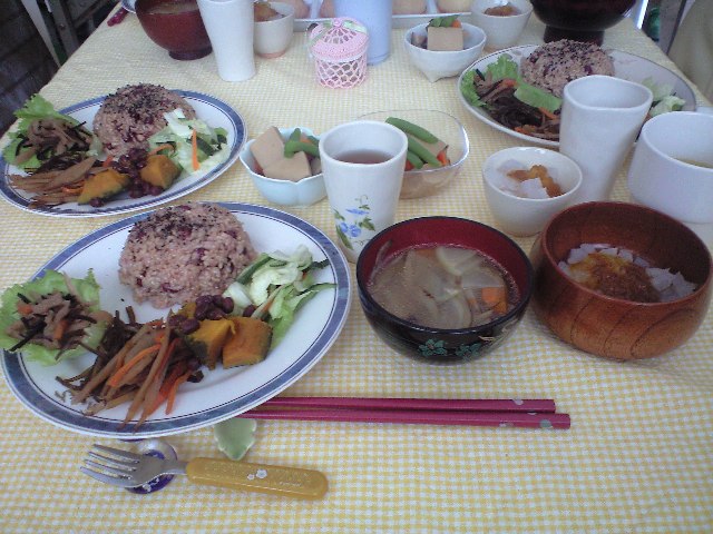 その他にも用意して下さっていたのもありまして、かぼちゃとあずきの煮物とひじきの煮物と昆布の佃煮。(名前があっているかはわかりませんが…)