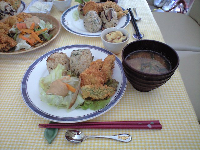 は…☆しそごはん←ゆかりも自家製で青じそと炒ったゴマを混ぜおにぎりにしました。