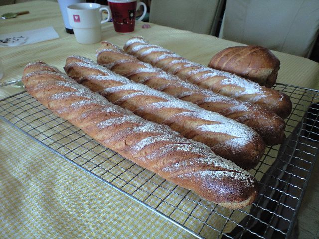 何度食べても飽きないッス。材料をコネコネし、発酵させオーブンで焼いて、美味しいバケットができました。